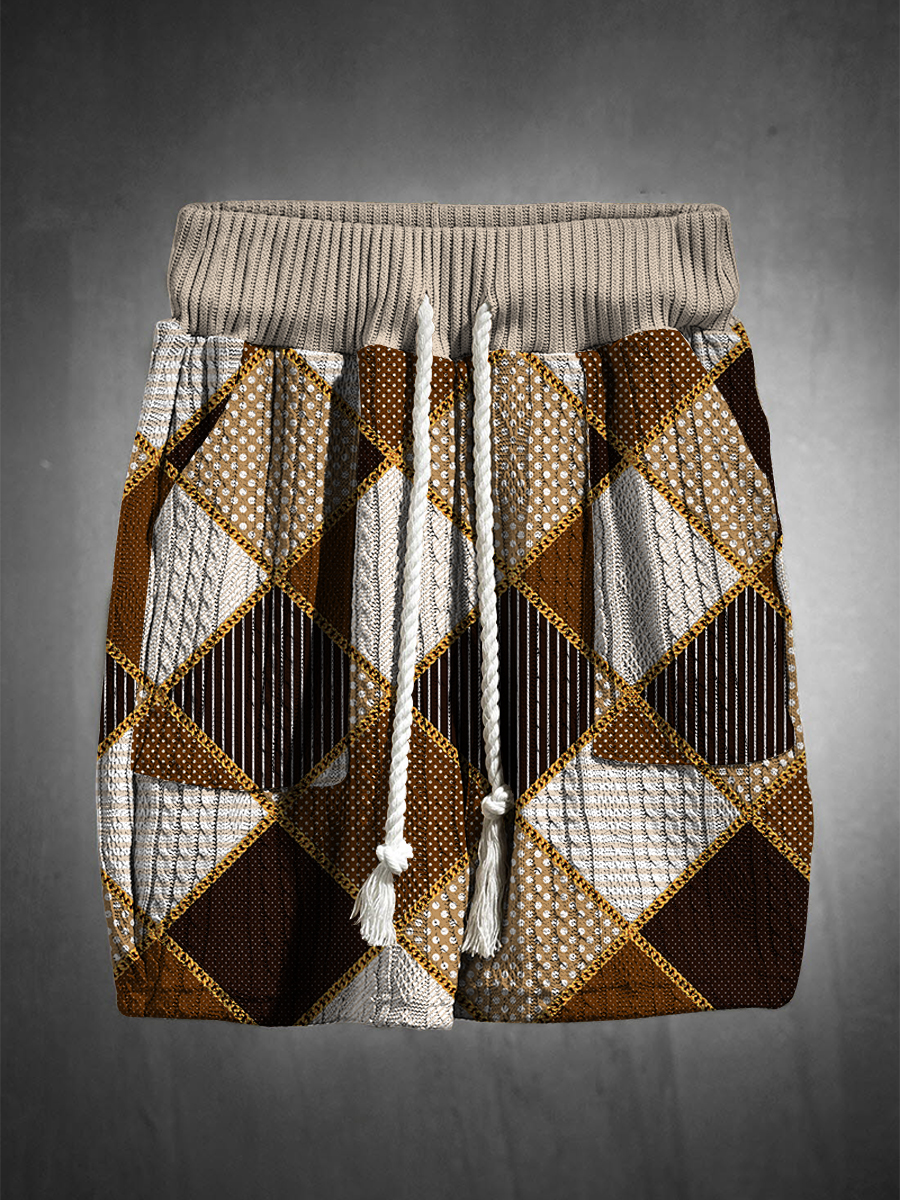 Men's V-neck luxury textured print shorts Set 015