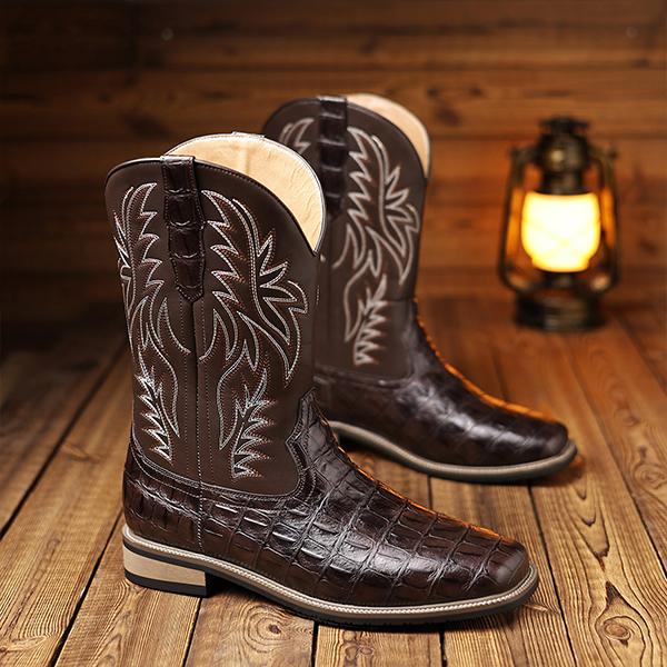 Thanks to their versatile design, MEN'S VINTAGE STONE EMBROIDERED COWBOY BOOTS can be paired with a wide range of outfits. They look great with jeans, chinos, or even a tailored suit, allowing wearers to seamlessly integrate them into both casual and more polished looks. The combination of rugged Western elements and artistic details makes these boots a standout accessory for anyone who values both fashion and craftsmanship. Whether you're a cowboy at heart or simply someone who appreciates a unique, quality pair of boots, these vintage stone embroidered cowboy boots make a powerful statement of style and individuality.