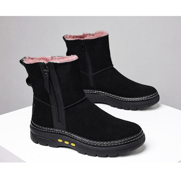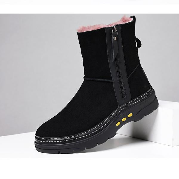 The Men's Warm Comfortable Faux Fur Insulated Non-Slip Outdoor Lace-Up Mid Calf Booties are designed to keep you cozy and secure during cold weather. These boots feature a durable, weather-resistant exterior and a soft faux fur lining for maximum warmth and comfort. The lace-up design ensures a snug, adjustable fit, while the mid-calf height provides extra protection against the elements. A cushioned insole and insulated interior keep your feet comfortable, even on long outings. The non-slip rubber outsole offers excellent traction on slippery or uneven surfaces, making these booties perfect for outdoor activities, whether it's hiking, snow walking, or everyday errands in winter conditions.
