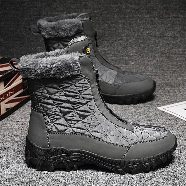The Men's Warm Lined Comfortable Faux Fur Front Zipper Snow Boots are designed to provide maximum warmth and convenience during winter. Featuring a soft faux fur lining, these boots offer superior insulation, keeping your feet cozy even in freezing temperatures. The front zipper design allows for easy on-and-off wear, while ensuring a secure fit. Made with a water-resistant exterior and a durable, non-slip rubber outsole, these boots offer reliable protection against snow and slippery surfaces. Perfect for both outdoor activities and everyday winter wear, they combine practicality, comfort, and style to help you stay warm and steady in harsh conditions.