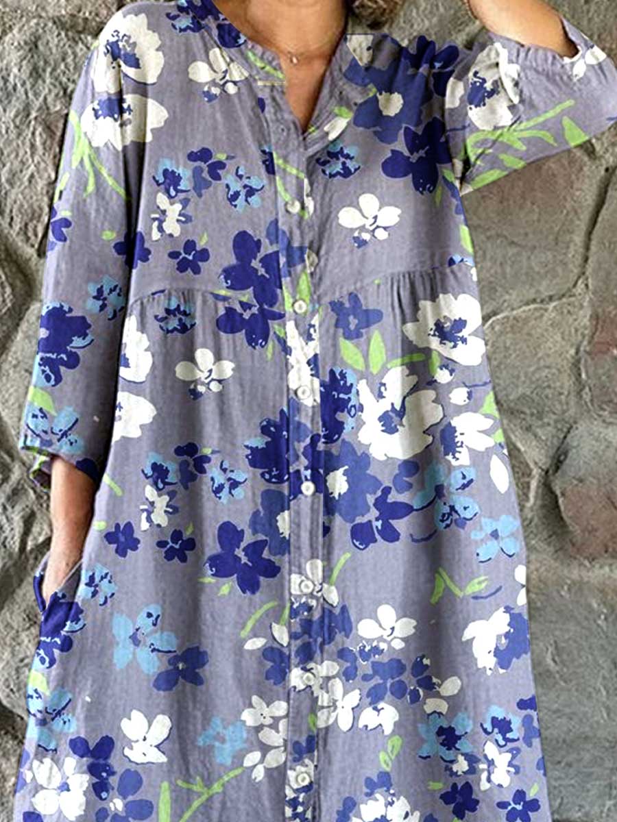 Women's Resort Art Floral Pattern Cotton Shirt Dress